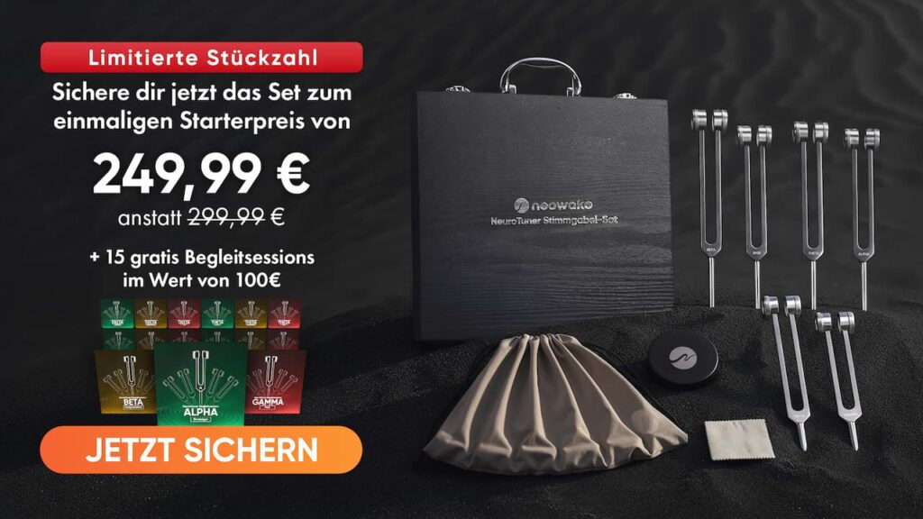 Die Welt der Frequenztherapie steht vor einem Meilenstein: Mit dem neowake® NeuroTuner Stimmgabel-Set kommt eine Entwicklung auf den Markt, die auf neurowissenschaftlichen Erkenntnissen basiert und klassische Ansätze der Phonophorese weiterdenkt. Zum ersten Mal werden Stimmgabeln nicht nur für Körperpunkte genutzt, sondern gezielt eingesetzt, um Gehirnwellen zu harmonisieren.